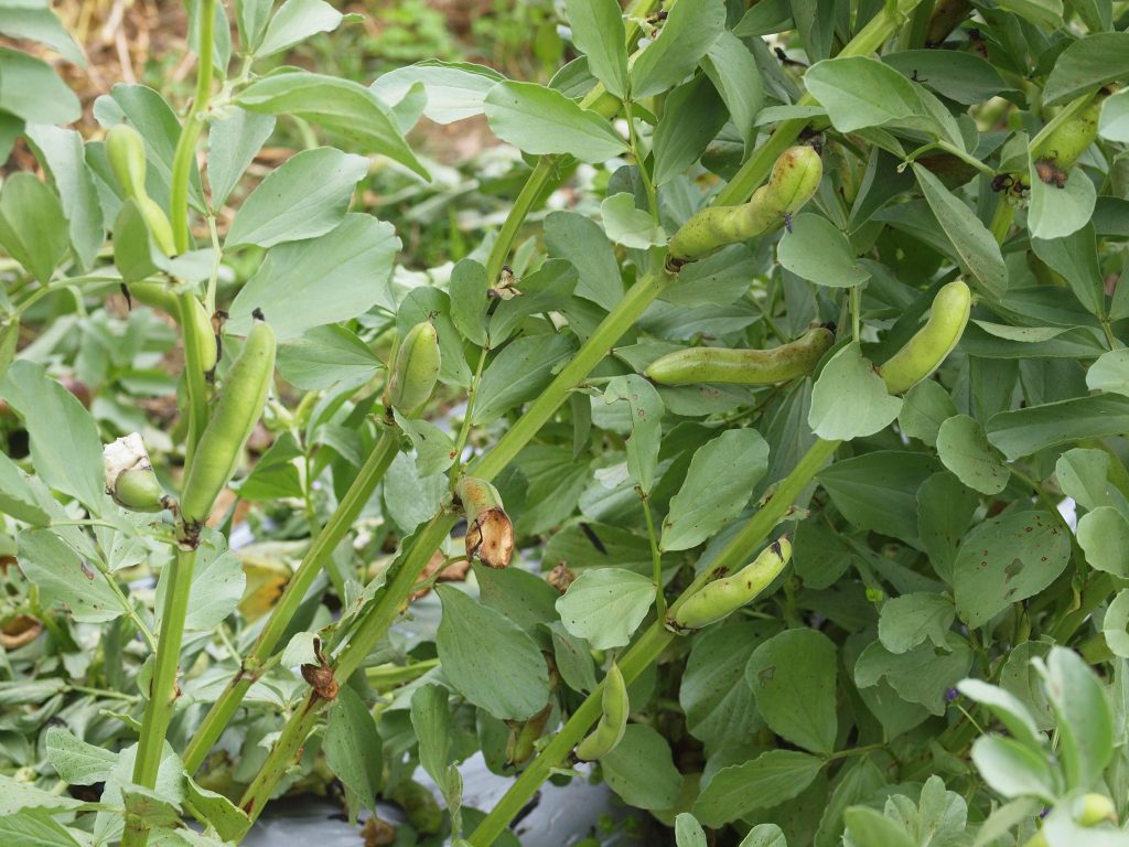 タマネギは中心部の部分を食べているようです。この部分が旨いと知らない猿はタマネギを食べないようですが、中心部が甘いことを知っている群れはタマネギのその部分を食べる、と聞きました。どうもこの付近の猿は学習しているようです。エンドウは2種類とも皮ごと食べる種類ですが、この雨の2日間収穫していませんでした。それなのか、豆が大きくなっているものを選択的に豆だけを取り出して食べています。エンドウは蔓が引っ張られて折れると、枯れてしまいます。もう終わりでしょう。最も悲しい被害はソラマメです。私の大好物で、ビールを飲みながら食べるのを楽しみにしていました。試しに大きくなったものを1鞘食べて美味しかったので、一部を雨上がりに収穫しようとしていた矢先でした。ソラマメの鞘の小さなうちは上を向いていますが(ソラマメの名の由縁)、大きくなると下を向き食べ頃になります。猿の食べた後を見てみると、大きなものは中の豆を食べて食い散らかして、小さなもの(上を向いている)は残しています。よく知っています。株ごと荒らしてもいて、先のことも考えてほしいものです。 明日は出かけなければならないので、どうなるか心配です。私が出かけるのを見張っているような気もします。また被害報告を出さないで済むように願うばかりです。
