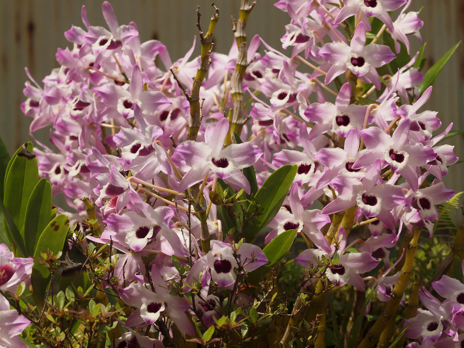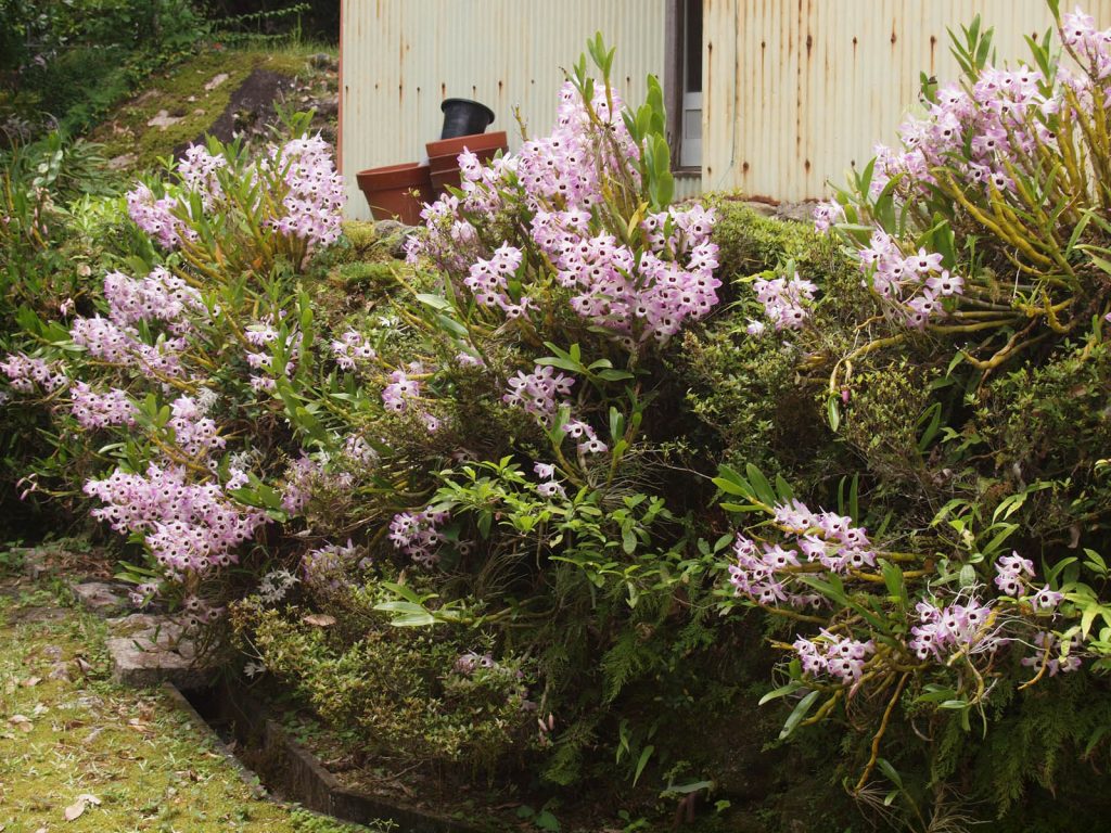 予告したように、暖かい日が続き、家の玄関横の石垣では、蘭が満開になりました。数年前のカバー写真と比べると、ほとんど変わっていません。どうも増えるというよりこの場所で新陳代謝を繰り返しているようです。花は2~3週間続くので、長い間楽しめます。一応、名前を調べてみました。Dendrobiumデンドロビウム属ではありますが、栽培品種のようです。絵合わせで思い切って同定すると、スノー・ボーイに近いのでは?