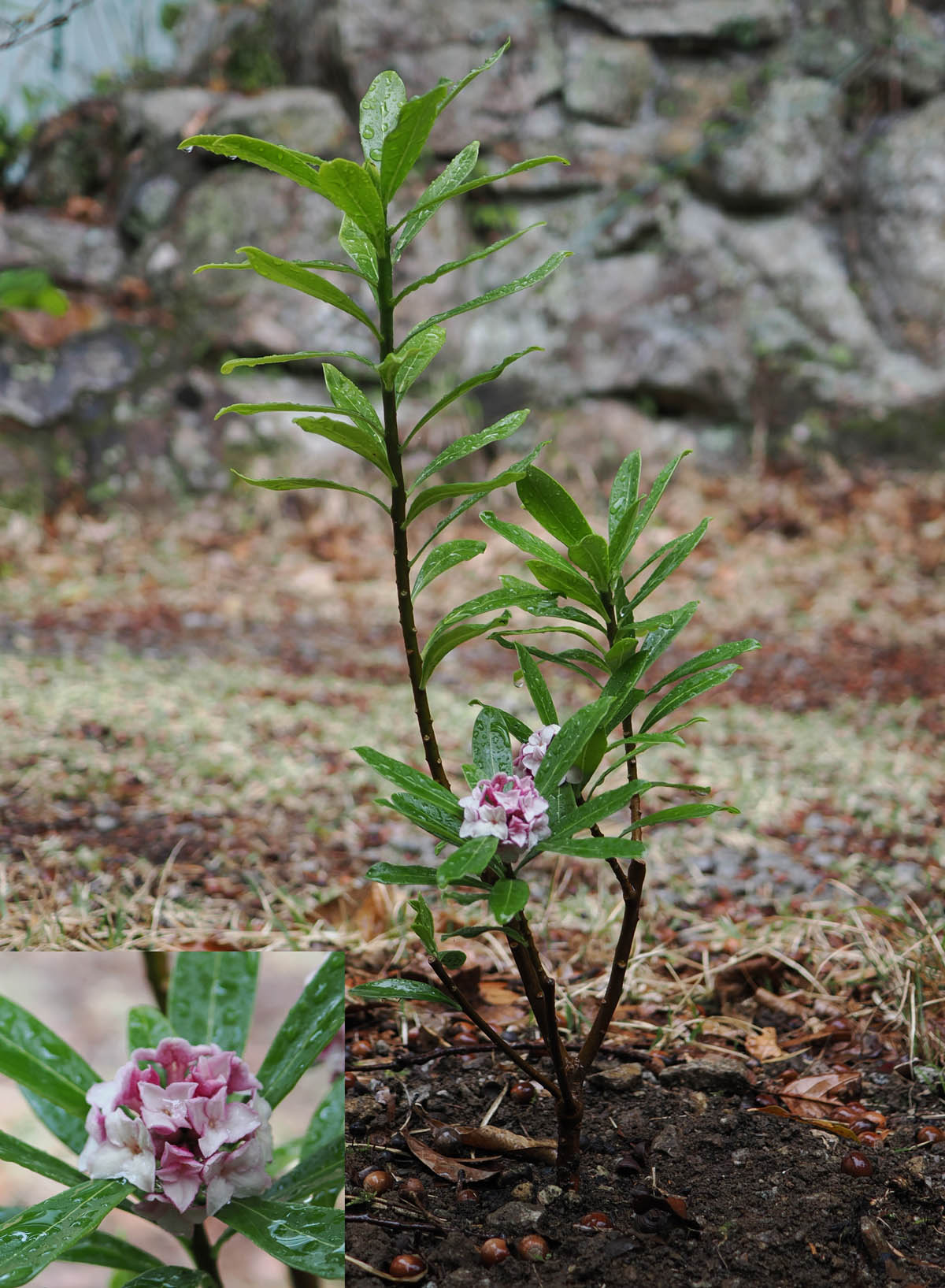 春になると木々が次々に花を咲かせます。前稿の続きです。他にもたくさん花が咲き始めていますが、今は、前に住んでいた北国から持ってきたユキヤナギが満開に近く、白い小さな花をたくさんつけています。つい最近、三大香木を全部そろえようとジンチョウゲ(沈丁)を植えました。小さいながら蕾のある苗を植えたのですが、ちょうど花を広げています。春はジンチョウゲ、夏はクチナシ、秋はキンモクセイが三大香木。後の2種類は庭やその付近で大きな木に育ち花を咲かせるので、以前に紹介しました。このジンチョウゲが大きく育ってくれれば、季節ごとに香りが満ち溢れることになるかもしれません。