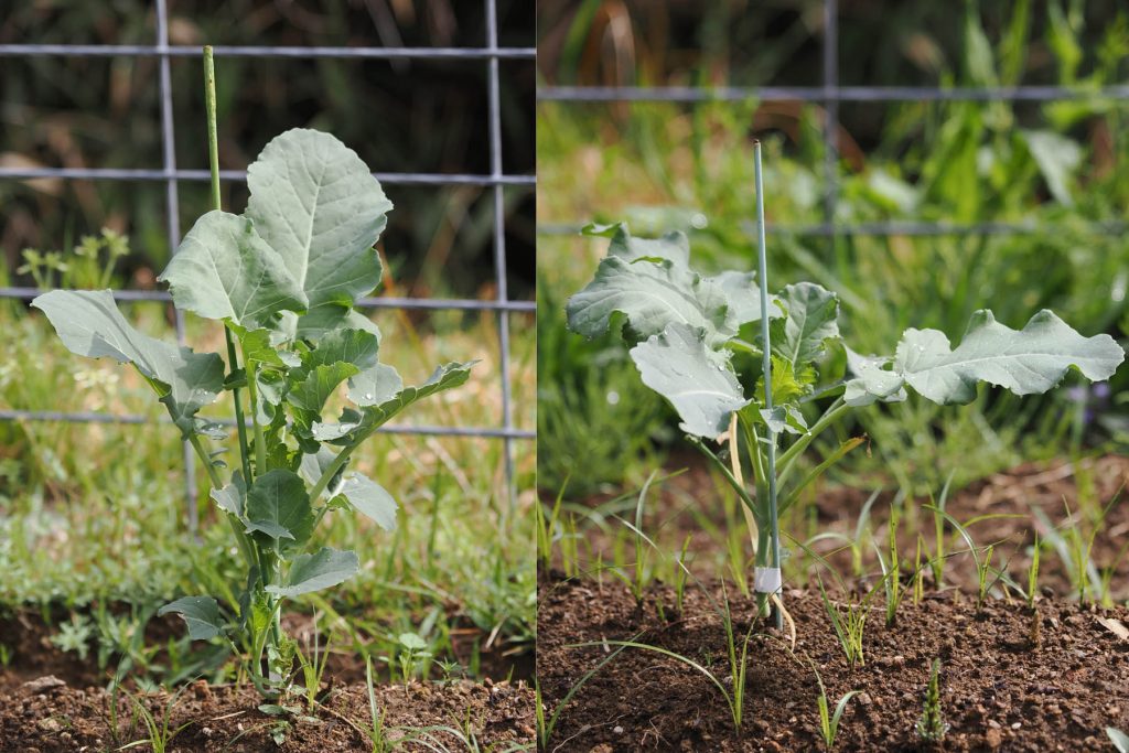 10日程前に鳥に食われて葉がなくなったスティックブロッコリーとブロッコリーの苗が回復してきたようです。生命力があります。回復してきてまた食われなかったのが良かったのでしょう。今まで果物の苗木が鹿に食われることがありました。苗木の先を食べられてその後回復しますが、回復時期にまた食われると枯れてしまいます。