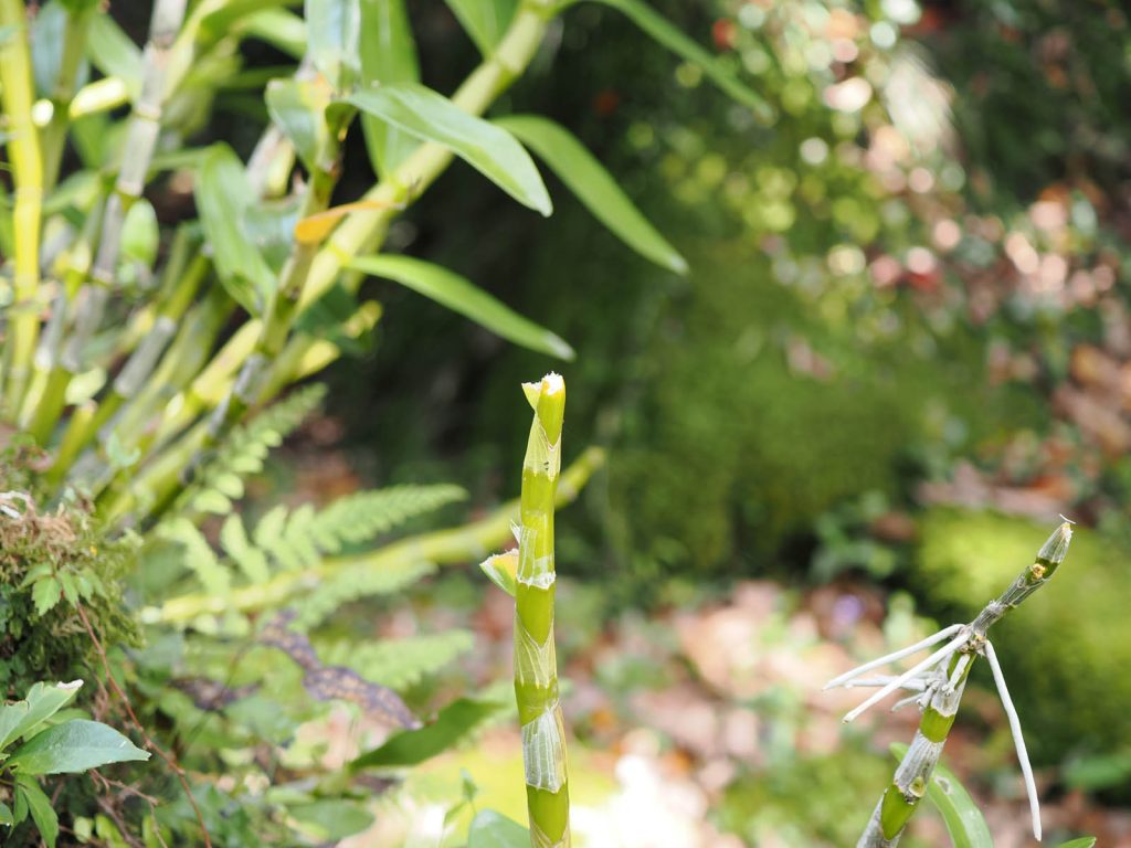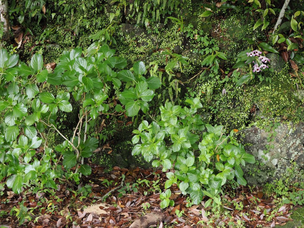 一方、少し奥まったところに植えたガクアジサイは今まで無傷だったので、昨年は大きな美しい花の詳細を紹介することができました。しかし、今年になって葉が大きくなってきたときに食われているのに気がつきました。昨年同様に近くの蘭も囓られています。今年は大きな花が見られなくなり、他の種類と同じように囓られた影響が今後も続きそうです。ガクアジサイはアジサイの中で一番好きな種類なので、がっかりするとともに怒り心頭です。つい先日、思いついてコンクリート用鉄筋のメッシュを置いて見ましたが効果があるかどうか。鹿は、ガクアジサイの生えているところよりさらに奥まで入ってきた形跡は見えませんが、橋の入口前の舗装道路では何度も鹿に出くわしていますし、路肩には食害の痕が見られます。よく見ると、我が家の橋と道路の間の割れ目から生えてきた、ビワとイヌビワも食われています。アジサイには毒があり、ビワとイヌビワには薬用効果があるといいます。まさかアジサイの毒をビワとイヌビワで中和???。こんな馬鹿な妄想も出てきます。北東にある玄関と南西に広がる畑にある裏門。先日報告した猿の襲撃を考えると、我が家の現状はさしずめ、「前門の鹿、後門の猿」。洒落にもなりません。