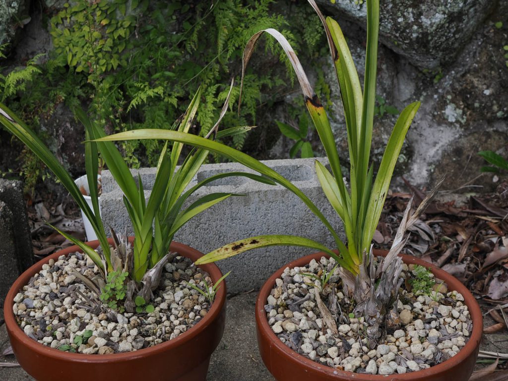 家に蘭が群生している為か蘭の栽培に興味が湧き、放置して枯れかかっているシンビジュームの鉢植えをいただき、昨年株分けして育てていました。順調に育ち、今年の春先に花茎を伸ばしたところに寒波がきて、葉の一部と共に枯れてしまいました。幸い新しい葉が少し出てきたので、今度の冬には暖かい場所で越冬させます。一方、数年前に機会があればニホンミツバチを飼いたいと思い、花に分蜂群への誘因作用がある蘭の仲間、キンリョウヘン( 金稜辺 )を購入し、株分けして4株に増やしました。冬の寒さに強いようですが、生長が遅く未だに花を咲かせる様子を見せません。蘭専用の肥料を購入し試してみることにしました。そうだ、○○さんのところにはエビネが生えているようです。移植する場所を探さなければなりません。蘭への興味が広がります。