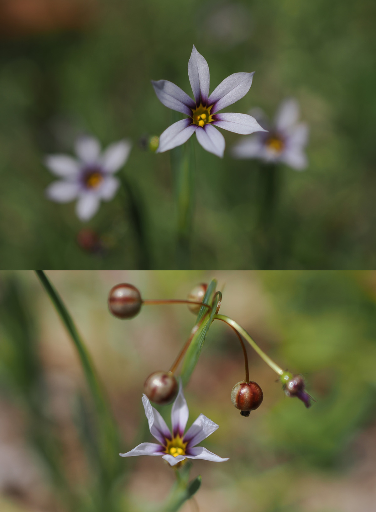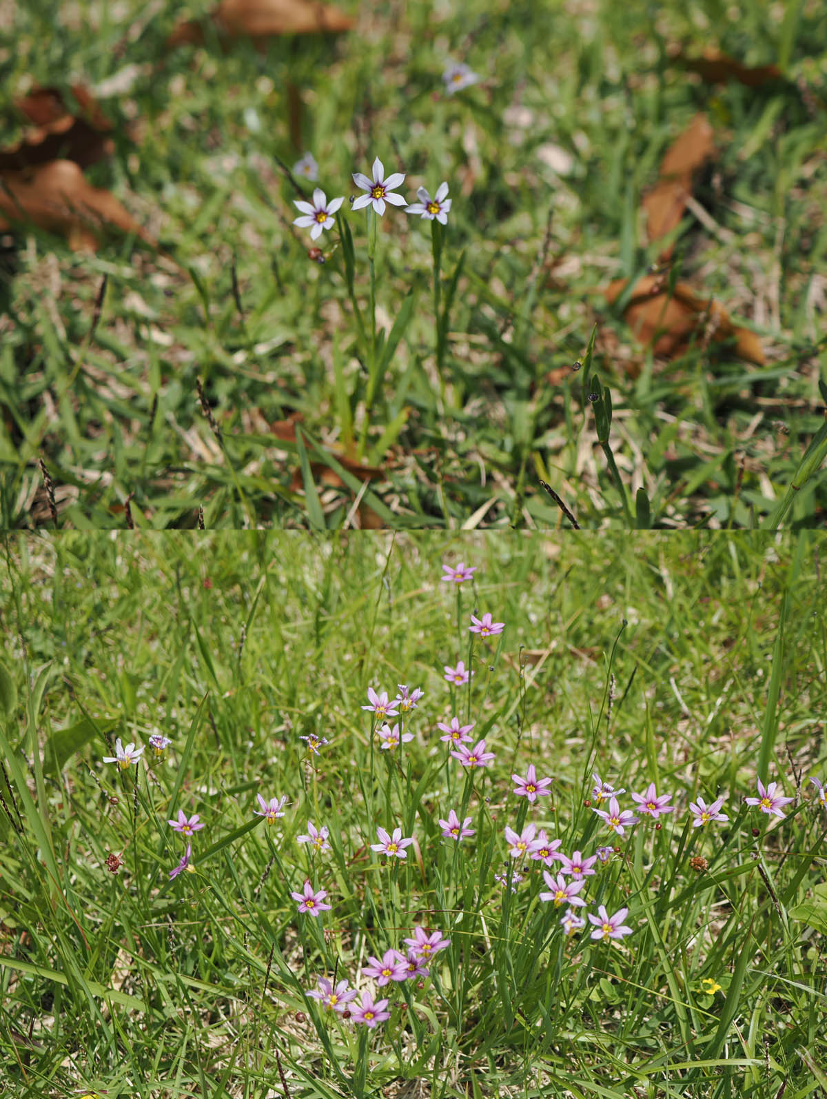 さらに、4月から6月にかけて、畑の場所によってはニワゼキショウの白から紫の花が今年はたくさん見られました。これも外来種です。植物学者の牧野富太郎によって研究用に移入され、東京大学付属の小石川植物園に移植されたものが逃げ出したとされています。花は小さなユリの形をしていますがアヤメの仲間で、花姿は気品を漂わせ、凛とした風情を持ち、おまけに一日花としてはかなさがあるので、俳人をはじめ多くの著名人に触れられています。花言葉は、「愛らしい人」「繁栄」「豊かな感情」。これらの人たちは、少しずつ日本で広がったこの小さな花を、異国で愛される野の花となることを望んでいたのかもしれません。