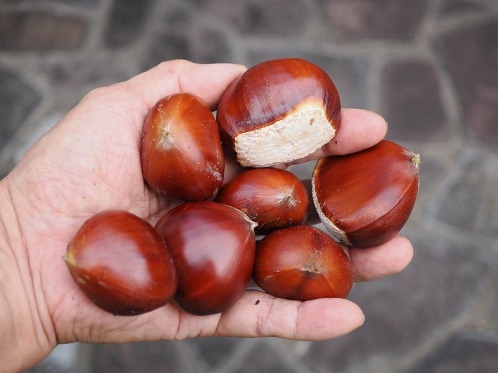 クリの品種であるポロタンは台風で毬栗をたくさん落としましたが、昨日イガが割れて実を覗かせているものがありましたので、木から落として収穫しました。木に残っている毬栗はあまり多くなく、小ぶりなものが多いので今年の収穫は期待できないでしょう。ポロタンの実は渋皮が剥けやすく(まだあまり収穫していないので実感がない)、大ぶりです。やっと収穫が増えてきて、今年は期待していたので残念です。