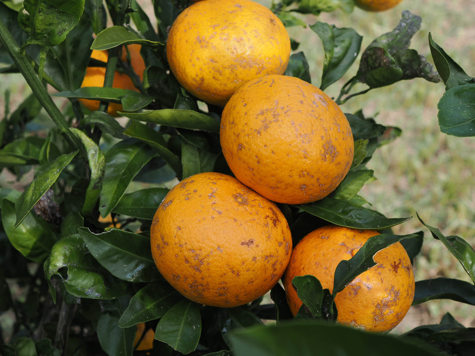 カメムシが大発生しているので、蜜柑の木を見て回っています。昨日のこと、黄色く色づいた実を見ていると、隣の葉の上で大きなカマキリが突然目に入り驚きました。大きさが10cm近くありました。顔を大写しでみると愛嬌があり、久しぶりの大物です。調べてみるとオオカマキリの雌のようです。その前日には、黄色くなった蜜柑の実の上に変わった虫を見つけました。形態は変わっているのですが、足を見ると8本あります。蜘蛛の仲間であることは確かなので、名前は容易にわかりました。アズチグモ。カメムシの天敵を調べてみると、蟷螂(カマキリ)や蜘蛛はすぐに出てきます。オオカマキリは大きさからさぞやたくさんのカメムシを食べてくれることは想像がつきます。アズチグモは小さく、体長は1cmにも達しません。それでも、アズチグモが属するカニグモの仲間は体長の数倍もある蝶や蛾も捕食することも多く、実際ネット上では自身の体長の倍以上もあるカメムシを捕まえている写真が載っています。農薬を使っていないので、天敵となる動物が残っているようですが、大発生の数を減らすには追いつきません。蜜柑への食害の傾向ですが、たくさん実がある中に分散して付くのではなく、特定の実に複数個体が付いているようです。カメムシは集合ホルモンを出すようなので、複数の個体が一つの実に集まり、次々に実を痘痕にしていくのではないでしょうか。これから寒くなり、蜜柑がもっと色づくとヒヨドリなどの鳥が蜜柑を食いに来ます。多少は蜜柑を食べてもかまわないので、今カメムシを食べてくれと言いたいですよ。