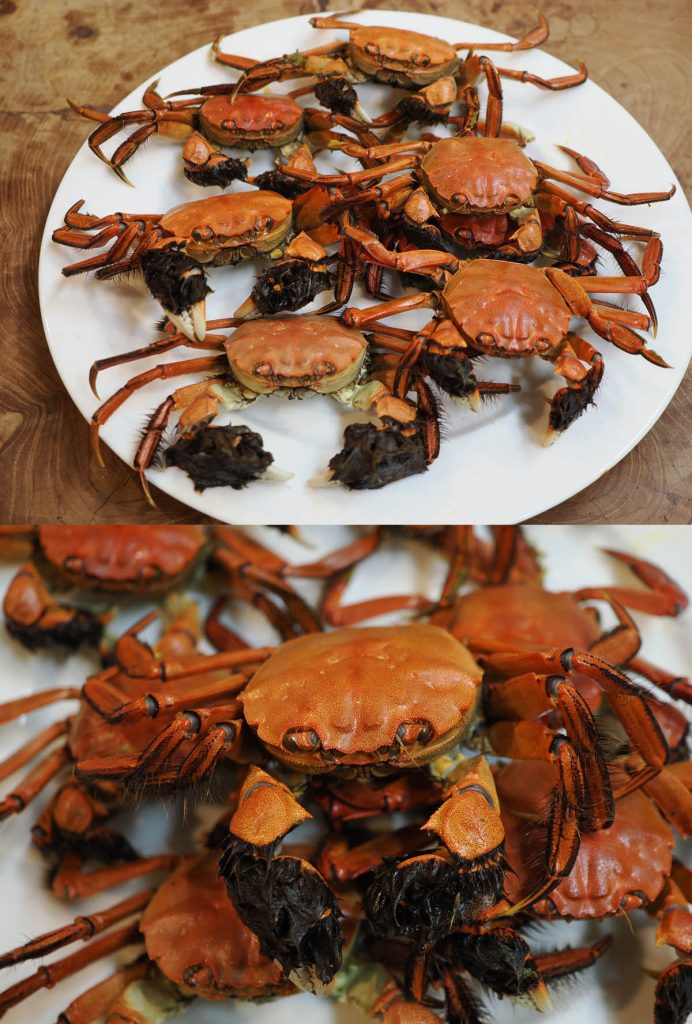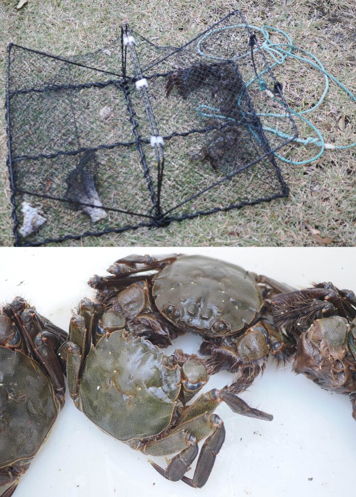 蟹かごと捕れたモクズガニ