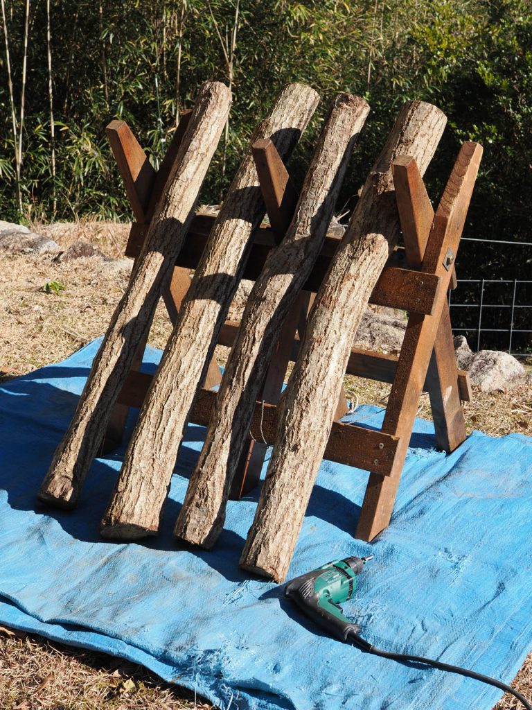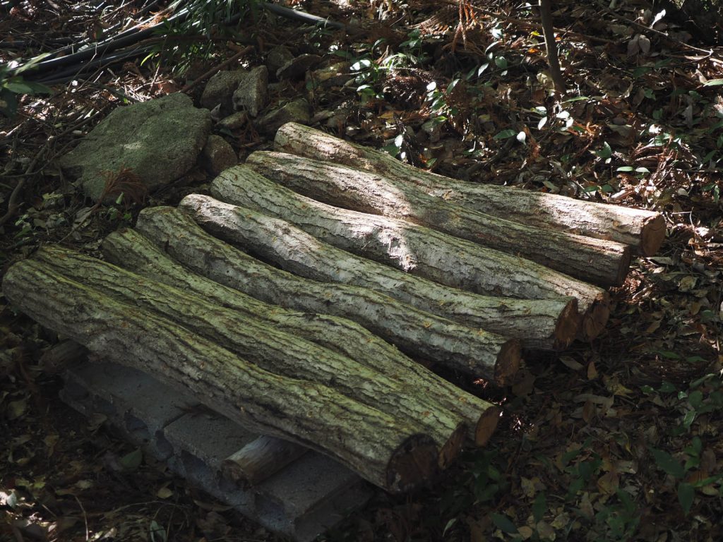 昨年もほだ木を作りましたが、今年と同様に原木の切り出しから、菌の接種まで長く開いてしまい(実を言うといつ切り出したか分からない古い木)、原木が乾燥しすぎていたのは明らかで、シイタケが出てくる気配があまり見られません。結構いい加減に作っていますが、今まで少しは出てくるので、大きなものを焼いて食べるのを楽しみにしています。でも、季節になり雨が降った後に一斉に出てきたときは食べきれず、干しシイタケを作ったりしています。採るのを忘れてお化けシイタケになることもあります。