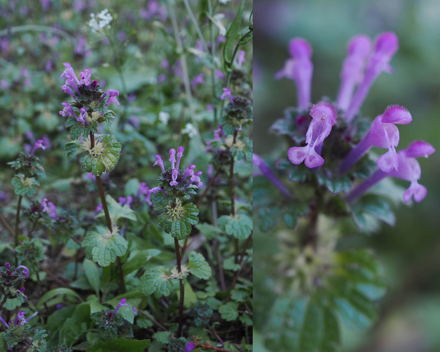 昨年の9月中旬に、家の一番近くにある畑を施肥・耕耘・整地し、一部にタマネギとソラマメを植えました。残りの部分は来年にもジャガイモを植えようと思いそのまま放置しておきました。よく言えば休耕地です。自家消費のためには野菜を作りすぎるので、冷凍などの保存がきく野菜以外はたくさん作らないようにしています。けれども種を蒔くとたくさん出てくるので、未だに消費しきれず、花を咲かせてしまう野菜がたくさんできてしまいます。その休耕地ですが、冬には雑草があまり生えない予想に反して、冬頃から2種の雑草、ホトケノザとナズナが目立つようになり、1月下旬には一面の花盛りです。施肥したので栄養が良いのか、暖冬(温暖化?)のためか、いずれも3月頃から花を咲かせる春の草花です。ナズナは春の七草ですが、このホトケノザは違います。2月に入り、あまりの繁茂に放っておけず草刈りをしました。まさか2月始めに草刈りをするとは思いませんでした。その後、施肥・耕耘・整地をし、一昨日に畝立てをしてジャガイモを植え付けました。