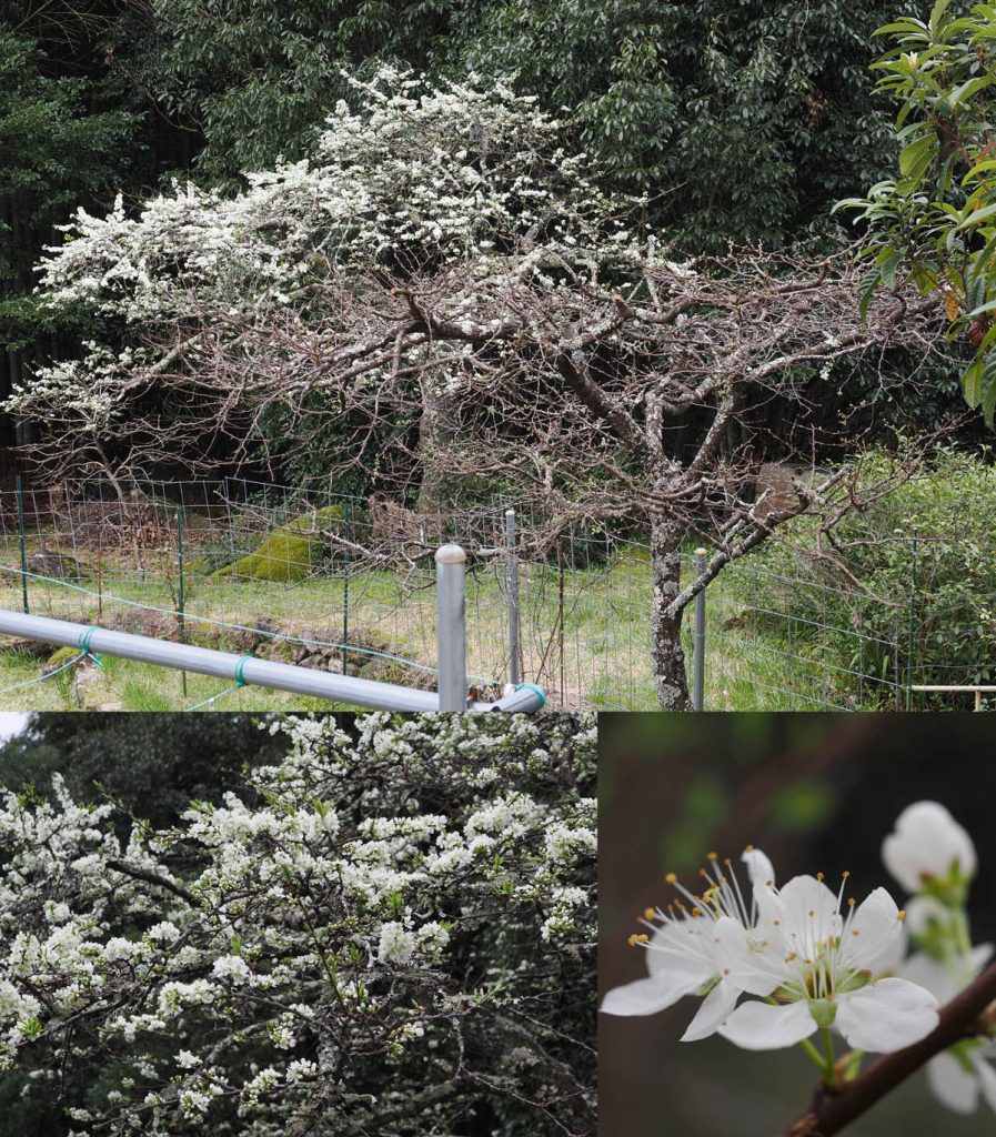 近所のサクラと我が家のブラムの老木が花を咲かせています。まだ五分咲きにもいっていないようです。畑のサクランボ(品種:暖地)はとっくに盛りをすぎました。私の住む場所はこの町では一番寒い場所のようで、いつもは少し遅いようですが、今年は他の場所と歩調を合わせています。