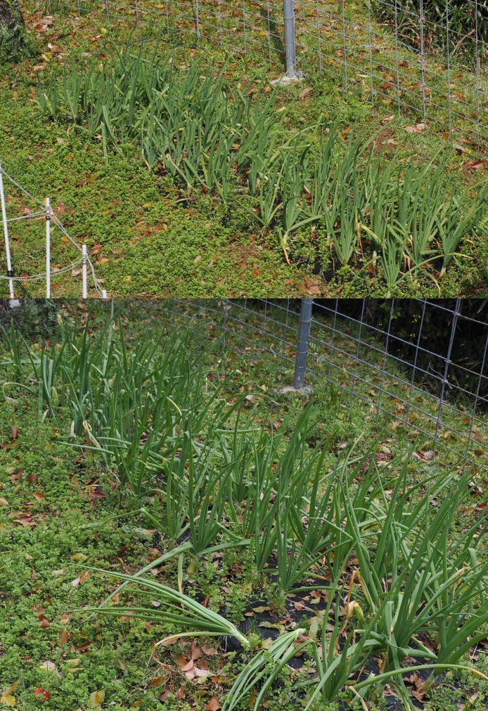 これで何度書くことでしょう。またまた猿に畑を荒らされました。昨日、猿に襲われるかもしれないと写真を撮っておいた矢先のことでした。離れたところの畑には作物をほとんど撤去したのですが、前回食い散らかしていった後に、畑の片隅に少し植え直したネギがまたやられました。薬味としてネギが必要だったので、前回したように猿の食い残しを持って帰りました。また猿の残り物ですよ~。