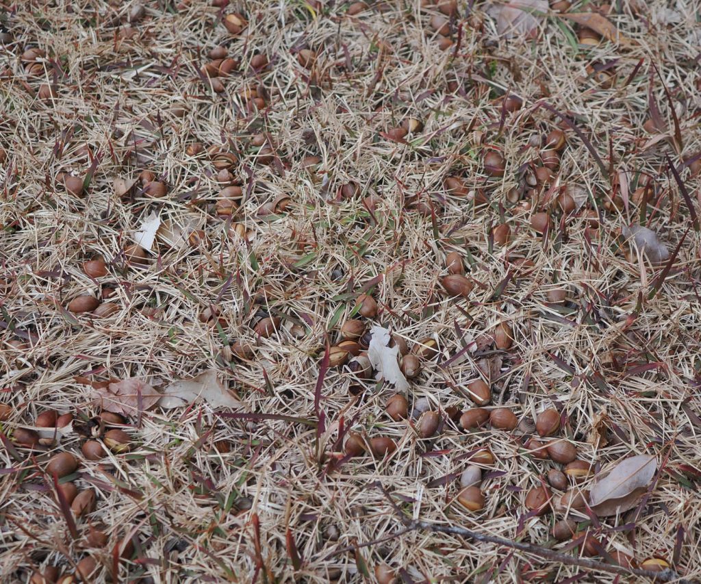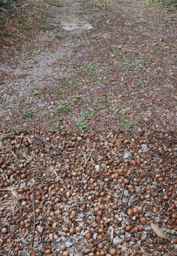 今季は今までになくドングリが大豊作のようです。家の玄関に通じる道、山へ上がる小径、芝生の上など、まだたくさん落ちていて未だに足の踏み場もないほどです。