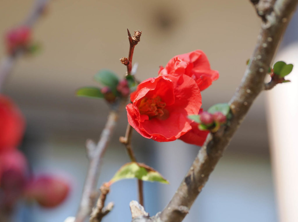 こんな寒さでも、庭ではボケの花が一輪だけずいぶん前から咲いていて、今では他の花や蕾みが多くなってきています。また、梅の花も目立つようになってきました。春は遠いようで確実にやってきています。暖かい季節になるのは良いことですが、植物の旺盛な生長と戦う、きつい草刈り作業を思うと今から憂鬱な気分になります。体力の心配が歳とともに早くなり、また増えてきています。