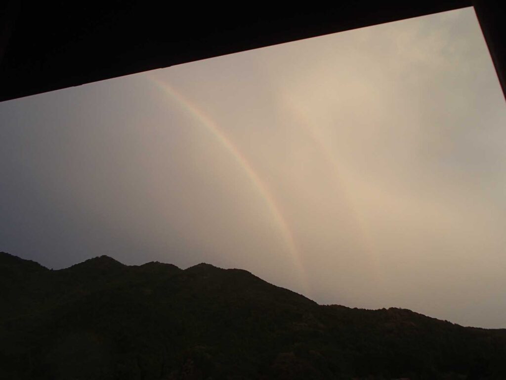 私の家の前の谷筋や対面の山の景色は捨てたものではありません。これを書いている二階の部屋からは、天気が良ければ星や月がよく見え、谷間に雲が立ちこめたり、虹がかかることがあります。こんな場所に住んで情報を発信できればと思っています。書き進めるうちに改良をしていきますので、画面デザインや内容などのご意見をいただければ助かります。